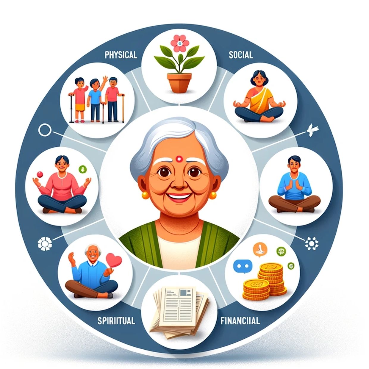 Happyvita is a comprehensive platform designed to enhance the well-being of senior citizens in India, integrating advanced technology to support various aspects of their lives. The platform focuses on five key pillars: Physical Well-being, Social Well-being, Mental Well-being, Spiritual Well-being, and Financial Well-being.